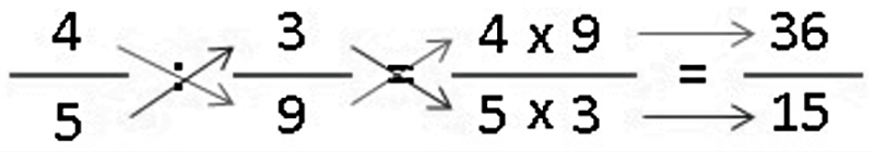 En este método se debe de realizar una multiplicación entre el numerador que pertenece a la primera fracción por el denominador que posee la segunda fracción, este resultado debe de ser colocado en el numerador de la fracción que obtendremos como resultado final. Luego se procede a multiplicar el denominador de la primera fracción por el numerador que tiene la segunda fracción y así es como se obtiene el número que deberá de colocarse en el denominador del resultado de la división.