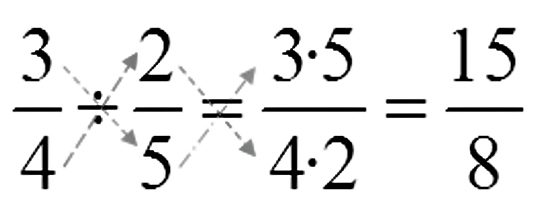 En este método se debe de colocar una fracción encima de la otra y luego, se procederá a realizar una multiplicación entre los números externos, el resultado de esta primera operación será el numerador final. Luego, se debe de proceder a multiplicar los números que están ubicados en la parte interna y con ellos se logra obtener el resultado final del denominador.