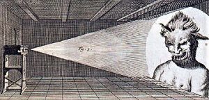 The name “magic lantern” comes from the experience of the first audiences who saw devils and angels mysteriously appear on the wall, as if by magic. Even in the earliest period, the representations contained moving images created with moving glass pieces.