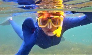 El esnórquel es un deporte de agua que implica la práctica del buceo a ras del agua llevando una máscara de buceo apropiada para proteger los ojos y un tubo respirador para tomar aire y poder desplazarse a nivel del agua del mar.