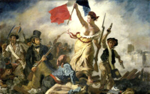 La libertad guiando al pueblo es una obra de arte maravillosa considerada además como el primer cuadro político que apareció en la época de la pintura moderna. En ella se puede observar a los franceses, mendigos, niños usando armas y cadáveres en una lucha que se desarrolla entre el humo y explosiones.