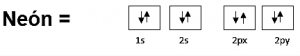 Si se estudia el elemento de la tabla periódica “neón”, este cuenta con una capa llena de orbitales de 2s y 2p lo cual se estructuraría de la siguiente manera:
