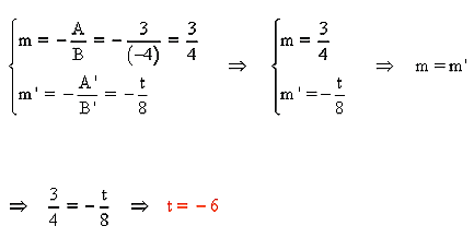 Determina el valor de t para que las siguientes rectas sean paralelas: