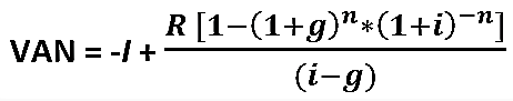 Sucede cuando las rentas no son fijas y se pueden incrementar con una tasa de crecimiento “g”. La fórmula es la siguiente:
